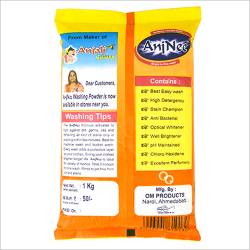 We have earned a reputation of dignified manufacturer and supplier of excellent quality AnjNee Washing Powder. Our offered powder is processed at our end using premium quality chemical compounds and ultra-modern techniques. The powder offered by us is widely used for washing the clothes. Before providing it to the clients, this washing powder is checked on distinct measures by our quality experts. Further, clients can avail this powder from us in various packaging options. Best for machine wash and bucket Wash.
